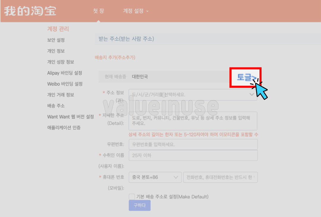 타오바오에서 배대지 없이 집으로 바로 직배송이 가능해요.