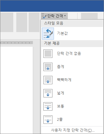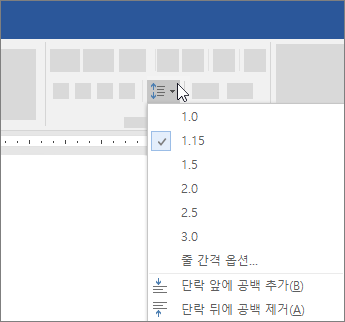 홈 > 선 및 단락 간격을 선택하고 원하는 간격을 선택합니다.