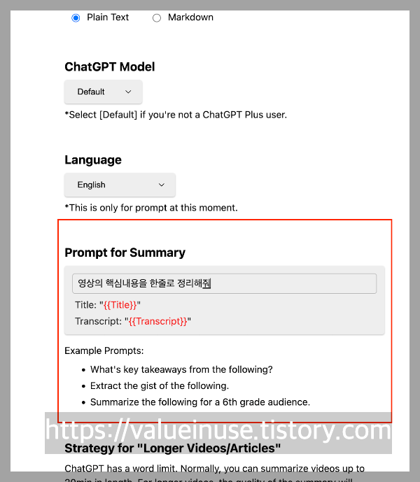 영상을 어떻게 정리할 것인지를 작성해 줍니다. 자세한 질문일수록 자세한 답변을 해줍니다.