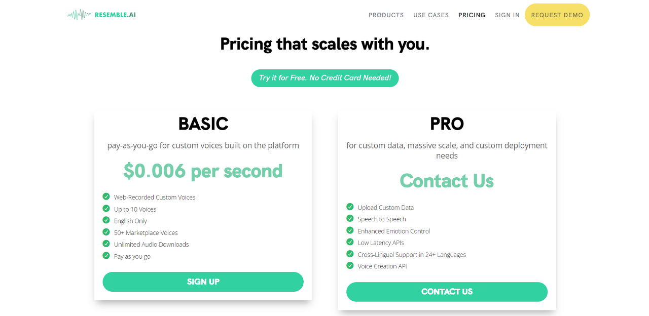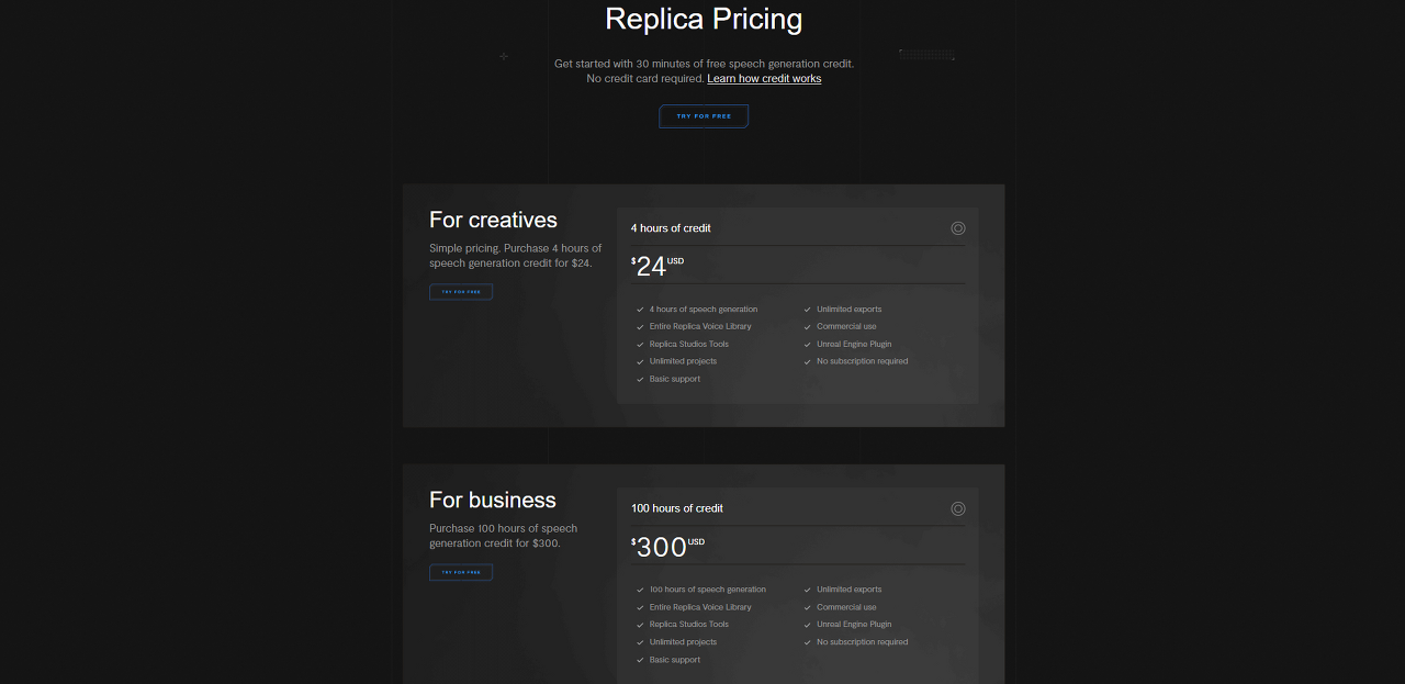 Replica는 30분 분량의 AI 생성 음성 샘플을 무료로 제공합니다. 구매하기 전에 사용 가능한 모든 대안과 목소리를 조사할 수 있는 좋은 기회입니다.