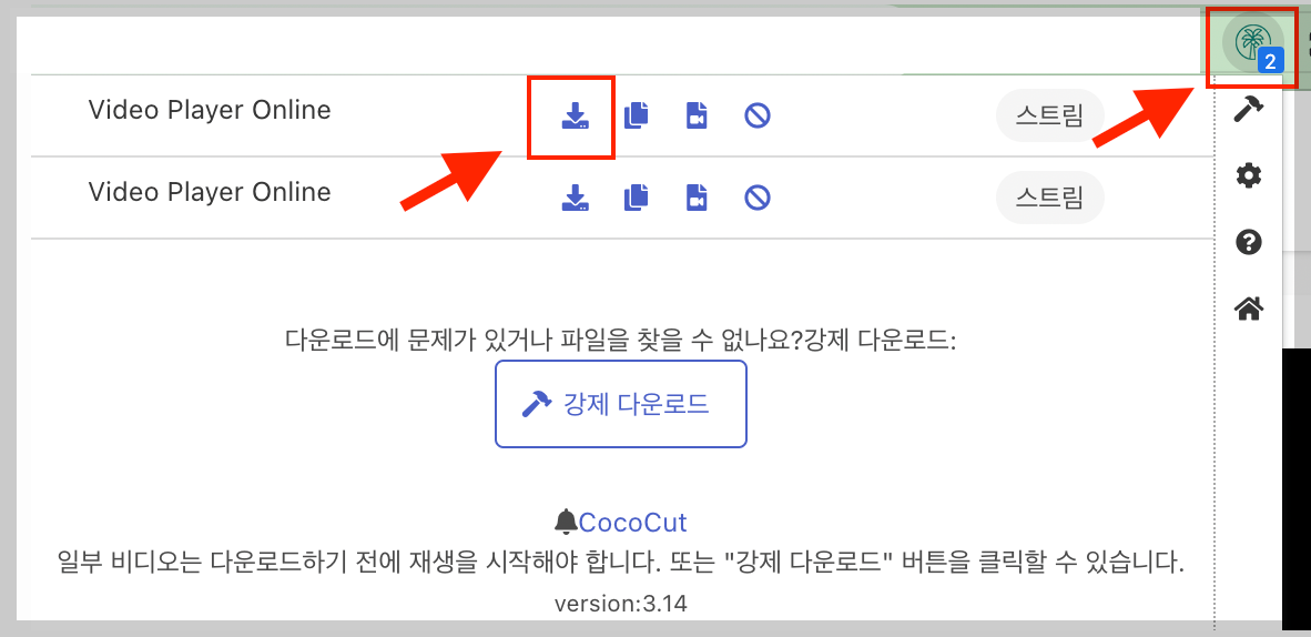 설치한 프로그램에 다운받을 수 있는 파일의 숫자가 생성, 둘중 하나 다운로드 버튼 클릭