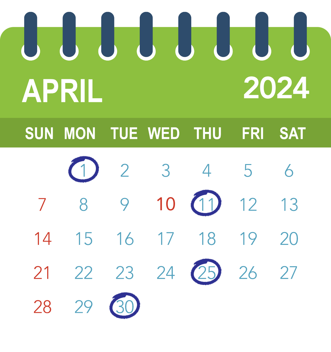 | 04 | 25 | 2024.1기 부가가치세 예정신고 납부 | 2024.1~3월분 |