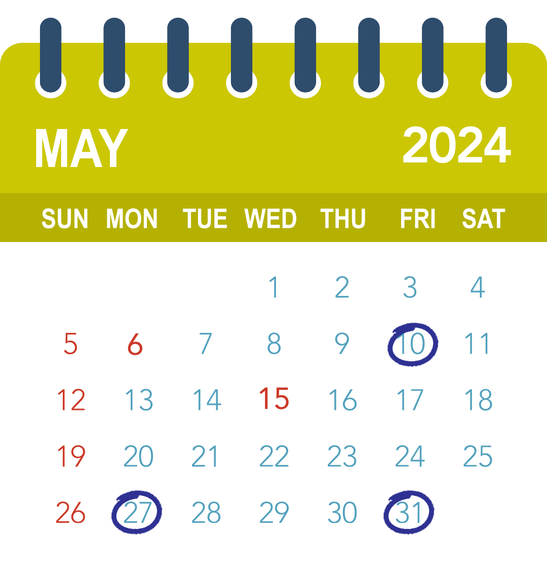 | 05 | 31 | 양도소득세 예정신고 및 납부 | 2024.3월 양도분 |