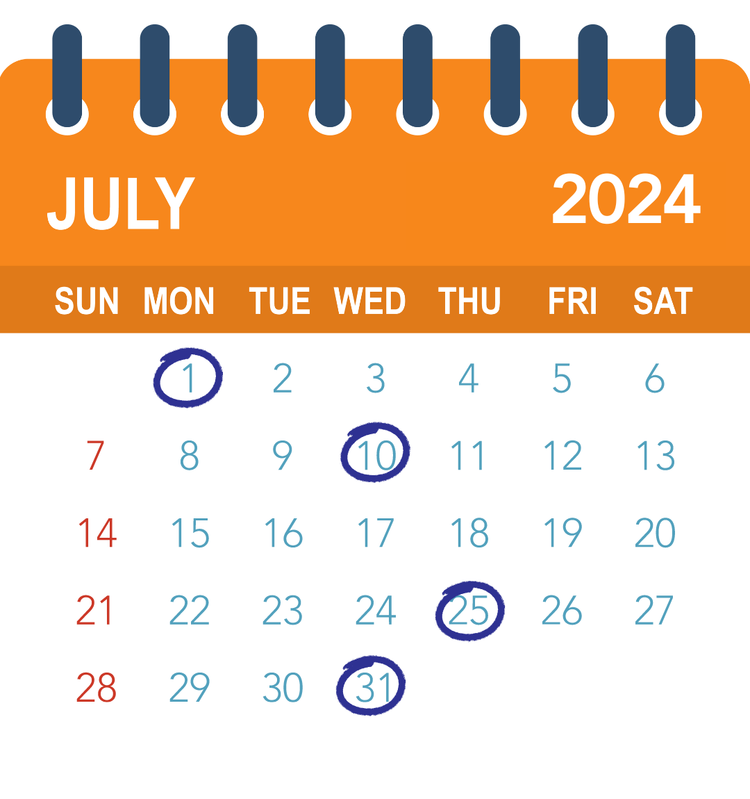 | 07 | 31 | 일용근로소득지급명세서 제출기한 | 2024년 6월 지급분 |